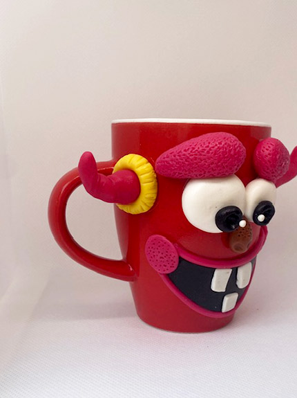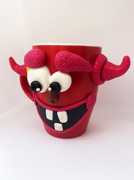 Red mug in monster design, 370ml, hand-made and hand-washable.