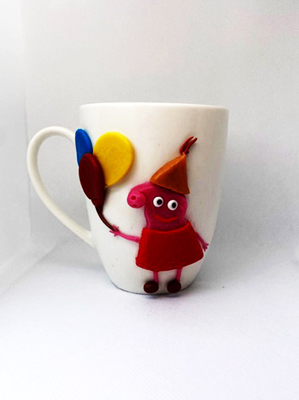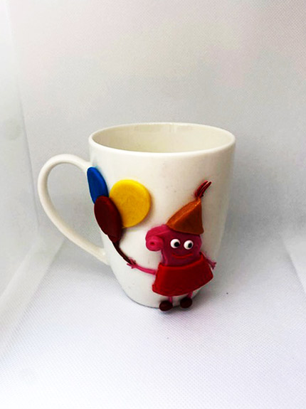 White mug in Pappa animation design, 350ml, hand-made and hand-washable